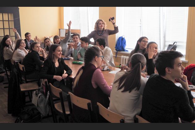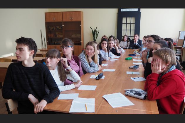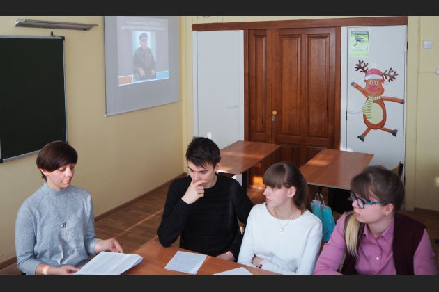 К 75-летию освобождения Воронежа от оккупации специалисты Научно-образовательного центра устной истории А.-М Карафизи. и О. Кулинченко. провели занятие с учениками 9-го класса гимназии им. И. А. Бунина. Встреча состоялась в рамках работы исторического школьного клуба «Мы и наше прошлое», действующего уже третий год.