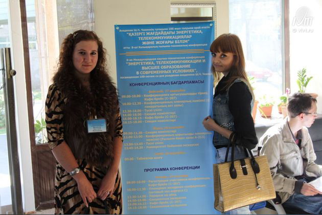 27-29 сентября в Алматинском университете энергетики и связи проводилась VIII Юбилейная международная научно-практическая конференция «Энергетика, телекоммуникации и высшее образование в современных условиях», посвящённая 100-летию со дня рождения академика Ш.Ч. Чокина. В конференции приняли участие студентка факультета дневного обучения Олеся Горбенко и аспирант ВИВТ Виктория Филипова.