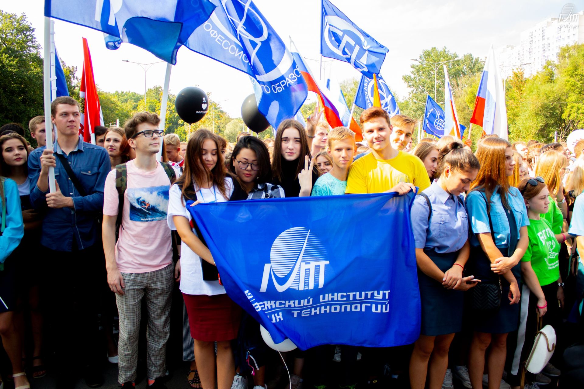 Представители воронежских вузов с символикой своих учебных заведений выстроились колоннами в Центральном парке культуры и отдыха.